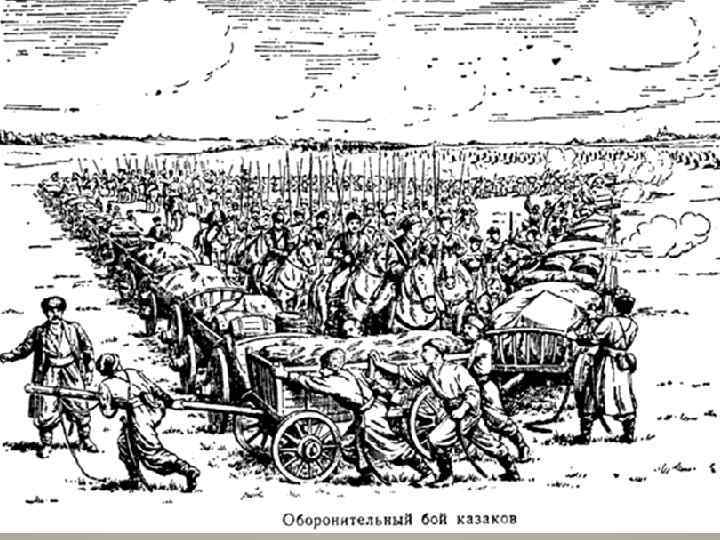 Казаки сопровождают возы с награбленной добычей.