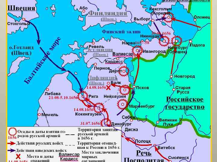 «Шведский потоп» Оккупация Швецией Прибалтики и Польши Русско-польская война 1654 -1667 1654 1655 1656 1657 1658 1659 1660 Оккупация Белоруссии Оккупация Украины Русскошведская война 1656 -1658 1661 1662 1663 1664 1665 1666 1667 Продолжение войны с Польшей Перемирие с Швецией Польшей Виленское Валиесаровское перемирие с Польшей Швецией 1661 - Кардисский мир с Швецией