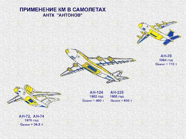 Композитные материалы Достоинства: üувеличением прочности и жесткости конструкции; üснижением массы летательных аппаратов; üвозможностью «управлять» прочностными и жесткостными характеристиками конструкции за счет использования анизотропии механических свойств материала; üсвободный выбором геометрии изделия. Недостатки: ü повышенная чувствительность к влаге (значительно уменьшается прочность); ü волокнистые композиты имеют низкие механические характеристики при нагружении их в направлении, перпендикулярном расположению армирующих волокон; ü у композитов с металлической матрицей имеется проблема физической (пластичность, прочность, температурный коэффициент линейного расширения) и химической (реакция армирующего материала с матрицей) совместимости.