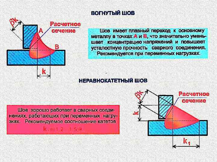 Предел выносливости сварного шва при переменной нагрузке ψσ - коэффициент чувствительности соединений к асимметрии цикла: R – асимметрия цикла Значение σ-1 c предела выносливости сварных деталей намного меньше значений σ-1 предела выносливости ОМе: Кс – коэффициент, понижения предела выносливости сварных деталей, учитывающих влияние факторов на сопротивление усталости Кσ - эффективный коэффициент концентрации напряжений; К 1 – коэффициент, учитывающий влияние неоднородности металла св. деталей; К 2 – коэффициент, учитывающий влияние габаритных размеров; Кd - коэффициент, учитывающий влияние длины l сварного шва; КF - коэффициет, учитывающий качество поверхности св. соединения