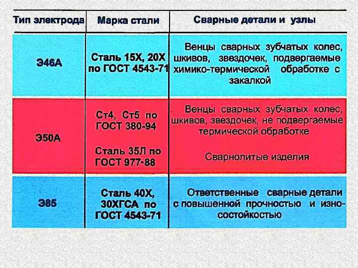 Марки сталей для сварных деталей Примеры марок стали Ст1, Ст2, Ст3 по ГОСТ 380 -94 Сталь 10, 15, 20 по ГОСТ 1050 -88 Сталь 15 Х, 20 Х по ГОСТ 4543 -71 Сталь 30, 35 по ГОСТ 1050 -88 Сталь 30 Л, 35 Л по ГОСТ 977 -88 Сталь 20 ХН 3 А по ГОСТ 4543 -71 Сталь 40, 45, 50 по ГОСТ 1050 -88 Сталь 35 Х, 40 Х по ГОСТ 4543 -71 Сталь 45 Х, 50 Х по ГОСТ 4543 -71 Свариваемость Условия сварки и качество соединения Хорошая Сварка в обычных условиях, любым способом. Качество сварного соединения высокое Для получения качественных сварных соединений рекомендуется предварительный Удовлетворительная подогрев свариваемых деталей до температуры 100… 150°С и термообработка после сварки. Ограниченная В обычных условиях сварки стали склонны к образованию трещин. Рекомендуется применение специальных электродов, предварительный подогрев деталей до температуры 250… 400°С и термообработка после сварки. Плохая Качество сварных соединений пониженно даже применении сложных технологических приемов: применение специальных электродов, предварительный подогрев деталей, термообработка до и после сварки.