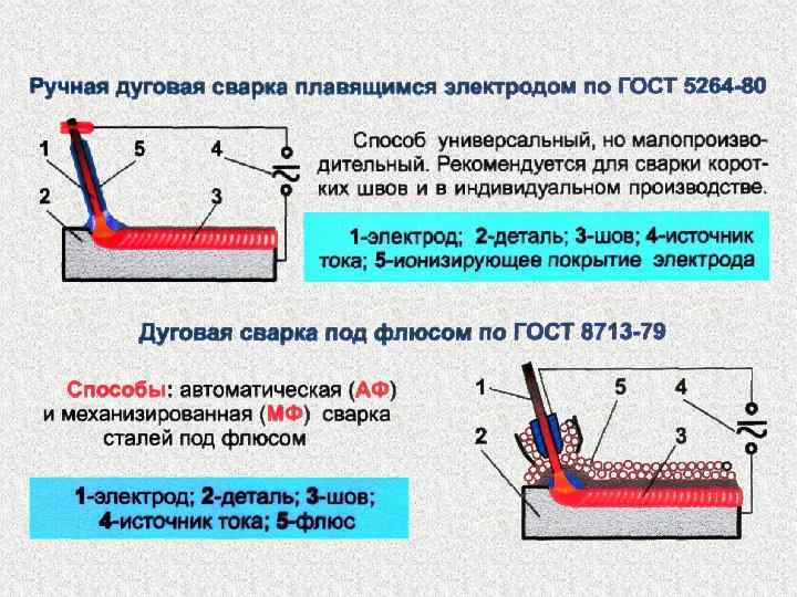 Способы сварки Основана на использовании теплоты электрической дуги для расплавления металла. Для защиты расплавленного металла от вредного действия окружающего воздуха на поверхность электрода наносят толстую защитную обмазку, которая выделяет большое количество шлака и газа, образуя изолирующую среду.