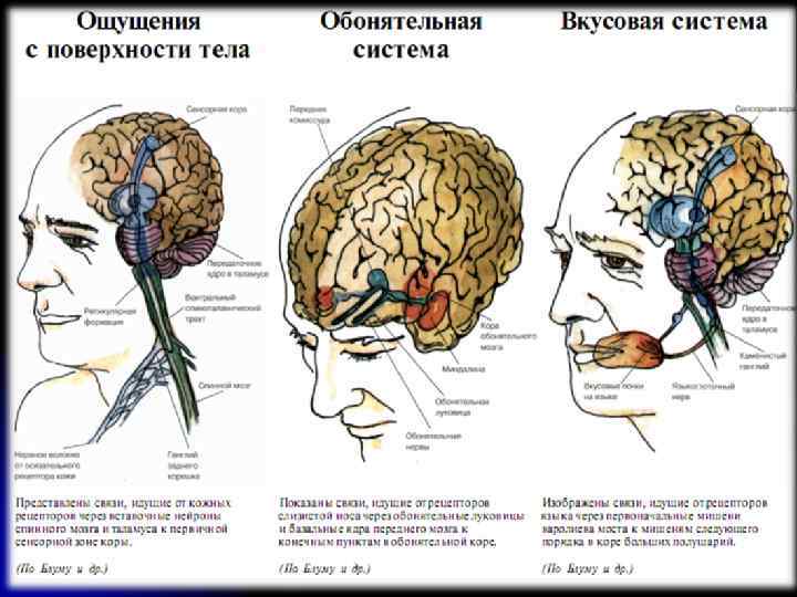 ПОЛЯ Принято выделять в зоне того или иного анализатора: • первичные или проекционные (первичные поля получают информацию, опосредованную через наименьшее количество переключений в подкорке - в зрительном бугре, или таламусе, промежуточного мозга). На этих полях как бы спроецирована поверхность периферических рецепторов. • вторичные поля (получают проекции от органов чувств через дополнительные переключения в подкорке, что позволяет производить более сложный анализ того или иного образа • третичные поля или ассоциативные зоны получают информацию от неспецифических подкорковых ядер, в которых суммируется информация от нескольких органов чувств, что позволяет анализировать и интегрировать тот или иной объект в ещё более абстрагированной и обобщённой форме. Эти области называются также зонами перекрытия анализаторов.