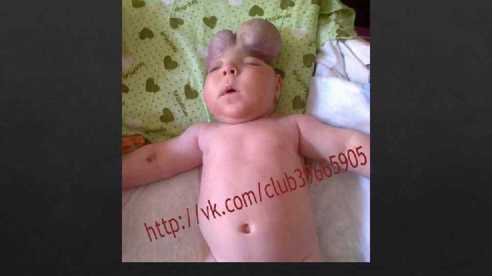 ЧЕРЕПНО-МОЗГОВЫЕ ГРЫЖИ представляет собой сочетанный порок развития мозга и черепа в результате дефекта закрытия переднего конца нервной трубки. Обычно черепно-мозговые грыжи локализуются по средней линии в области смыкания черепных швов, могут иметь разные размеры. В зависимости от содержания грыжевого мешка различают: 1. менингоцеле; 2. энцефаломенингоцеле; 3. энцефалоцистоцеле.