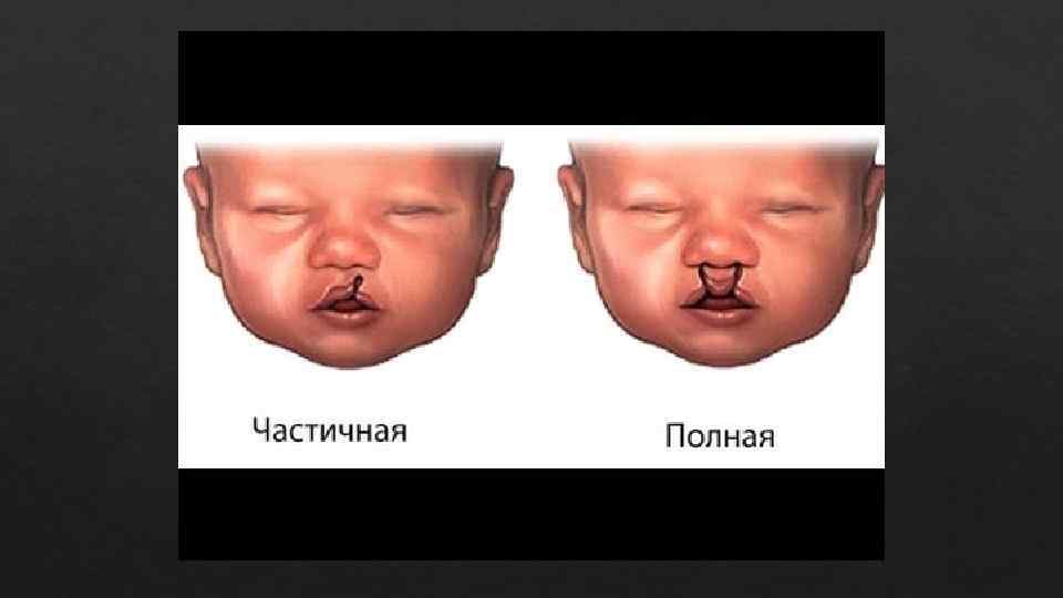Макростомия углов рта ( «большой рот» ). В тяжелых случаях расщелина может доходить до уха, сопровождаясь недоразвитием мышц, а иногда и всей половины лица. Изза постоянного слюнотечения происходит мацерация кожи, затрудняется кормление. незаращение Лечение года. хирургическое в возрасте одного