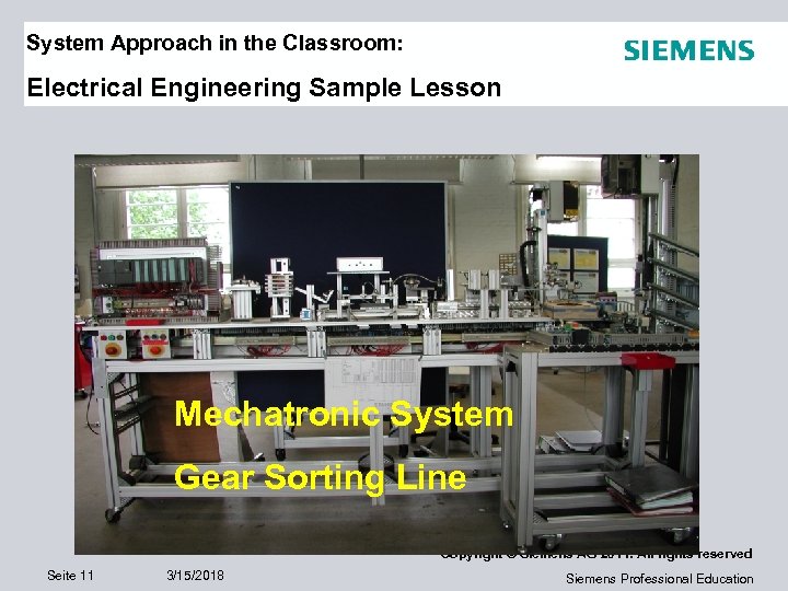 System Approach in the Classroom: Electrical Engineering Sample Lesson Mechatronic System Gear Sorting Line Copyright © Siemens AG 2011. All rights reserved Seite 11 3/15/2018 Siemens Professional Education