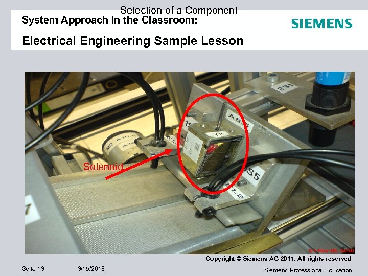Selection of a Component System Approach in the Classroom: Electrical Engineering Sample Lesson Solenoid Copyright © Siemens AG 2011. All rights reserved Seite 13 3/15/2018 Siemens Professional Education