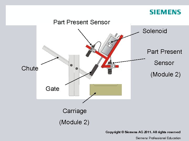 Part Present Sensor Solenoid Part Present Sensor Chute (Module 2) Gate Carriage (Module 2) Copyright © Siemens AG 2011. All rights reserved Siemens Professional Education