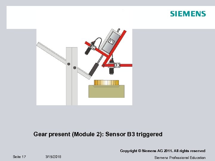 Gear present (Module 2): Sensor B 3 triggered Copyright © Siemens AG 2011. All rights reserved Seite 17 3/15/2018 Siemens Professional Education