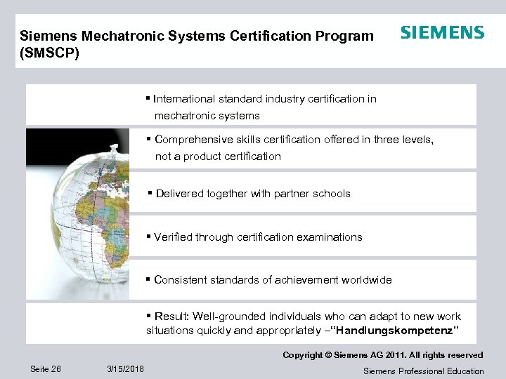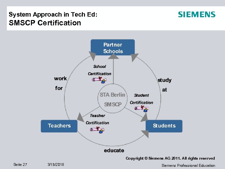 System Approach in Tech Ed: SMSCP Certification Copyright © Siemens AG 2011. All rights reserved Seite 27 3/15/2018 Siemens Professional Education