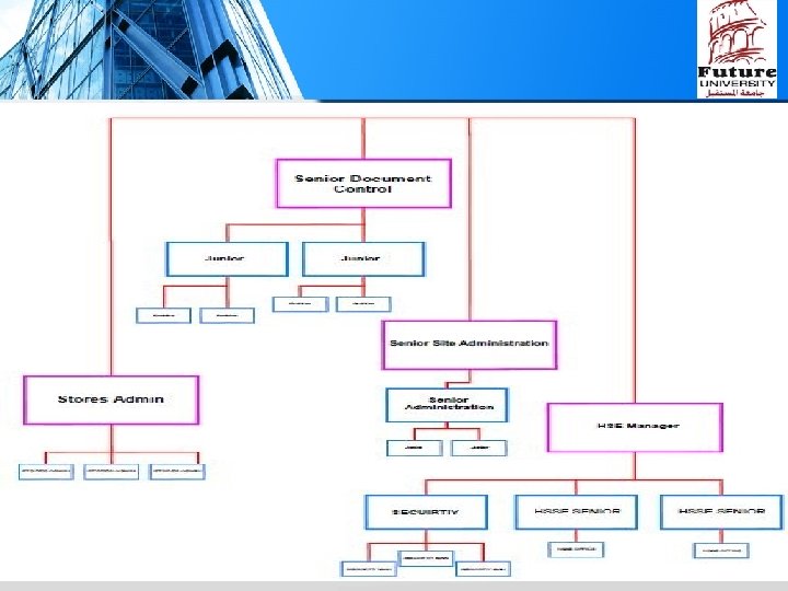 Organization breakdown Structure (OBS) It's a way of communication between different levels of responsibilities at an enterprise's hierarchy in order to facilitate relations between departments to achieve the set goal of the project. Good organization charts also allow you to organize the teams with clear responsibilities, titles and lines of authority. Clear and concise organizational chart is an invaluable management tool.