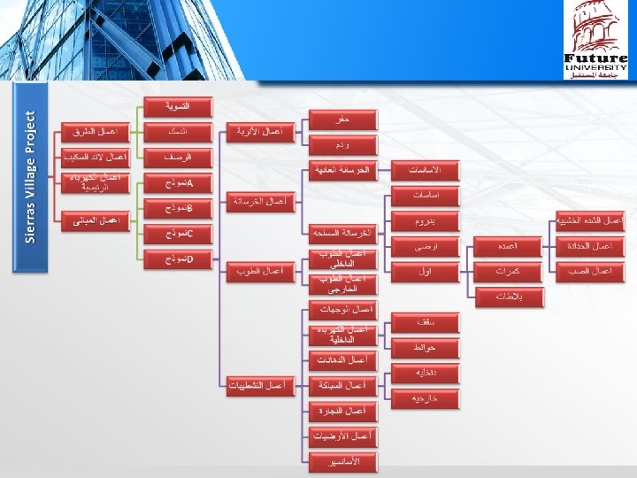 Types of Contracts ﺍﻟﻌﻘﻮﺩ CONTRACTS ﻣﻌﺘﻤﺪﺓ ﻋﻠﻲ ﺍﻟﺘﻜﻠﻔﺔ COST BASED ﺍﻟﺘﻜﻠﻔﺔ ﻣﻊ ﺍﺳﺘﺮﺩﺍﺩ ﻧﺴﺒﺔ ﻣﻦ ﺍﻟﻤﺼﺮﻭﻓﺎﺕ COST PLUS ﺍﻟﺘﻜﻠﻔﺔ ﺍﻟﻤﺴﺘﻬﺪﻓﺔ TARGET COST ﻣﻌﺘﻤﺪﺓ ﻋﻠﻲ ﺍﻟﺴﻌﺮ PRICE BASED ﺛﻤﻦ ﺍﻟﻮﺣﺪﺓ UNIT PRICE ﺍﻟﻤﻘﻄﻮﻋﻴﺔ LUMP SUM The contract of Sierras Village is a “Lump-sum” contract