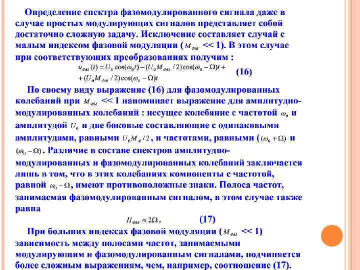 РИС. 7 АМПЛИТУДНО-ЧАСТОТНЫЙ СПЕКТР ФМ РАДИОСИГНАЛА ПРИ ОДНОТОНАЛЬНОЙ МОДУЛЯЦИИ И MФМ << 1