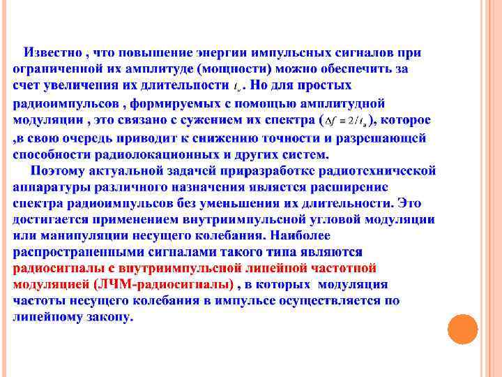 Сигналы с внутриимпульсной линейночастотной модуляцией