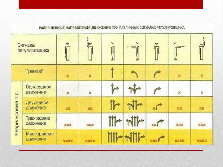 РУКИ ВЫТЯНУТЫ В СТОРОНЫ ИЛИ ОПУЩЕНЫ: • со стороны левого и правого бока разрешено движение трамваю прямо, безрельсовым транспортным средствам прямо и направо, пешеходам разрешено переходить проезжую часть; • со стороны груди и спины движение всех транспортных средств и пешеходов запрещено.