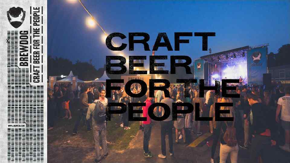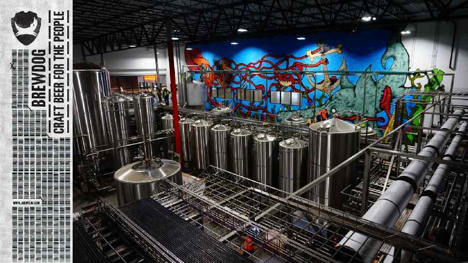 В настоящий момент Brew. Dog это: -- 1000 сотрудников (и 1 собака) -- заводы в Эллоне (Шотландия) и Колумбусе (США) -- 55000 держателей акций -- сварено 262 сорта пива (82 в 2016 году) -- дистрибуция в 60 стран -- 48 фирменных Brew. Dog баров В планах Brew. Dog: -- Дальнейшее расширение пивоварни в Эллоне: - расширение до 6000 квадратных метров - увеличение производительности в 5 раз - 40 x 2000 гл бродильных танков - варочный порядок на 300 гл - 5 новых солодохранилищ - абсолютная экологичность -- Постройка заводов по производству «кислых» сортов пива в Эллоне и Колумбусе -- Первый в мире «крафтовый отель» , совмещенный с «кислой» пивоварней» , в США – Dog. House -- Постройка завода в Азии, расширение сети баров