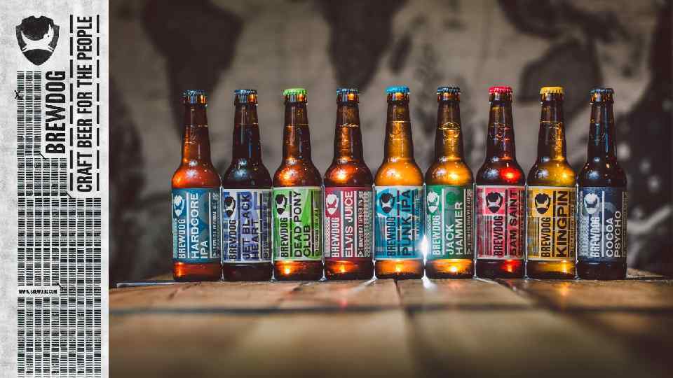 ПИВО BREWDOG Линейки: 1. HEADLINERS (Хэдлайнеры) - основная, варится круглый год 2. AMPLIFIED (Усиленное) – основная, варится круглый год 3. TUNED (Настроенное) – основная, варится круглый год 4. SEASONAL (Сезонные) – зависят от времени года, меняются каждый год 5. SPECIAL RANGE (Специальные серии) – меняются из года в год, сорта объединены какой-либо одной идеей 6. HIGH OCTANE/SMALL BATCH/ABSTRACT (Высокооктановое/Ограниченные серии/серия Абстракт) – сорта и серии сортов пива, которые варятся разово, ограниченными партиями и т. д.