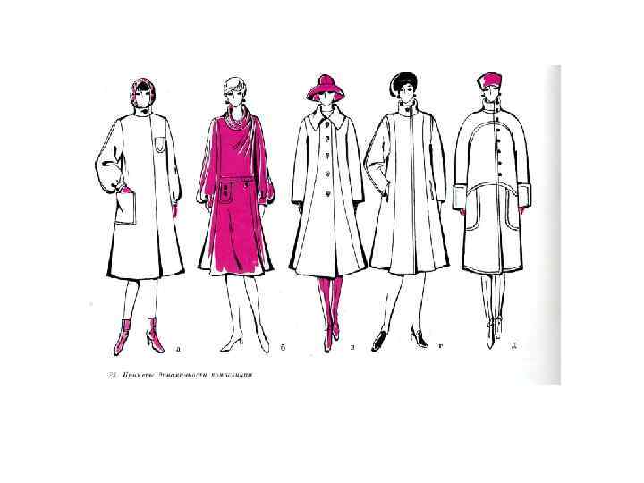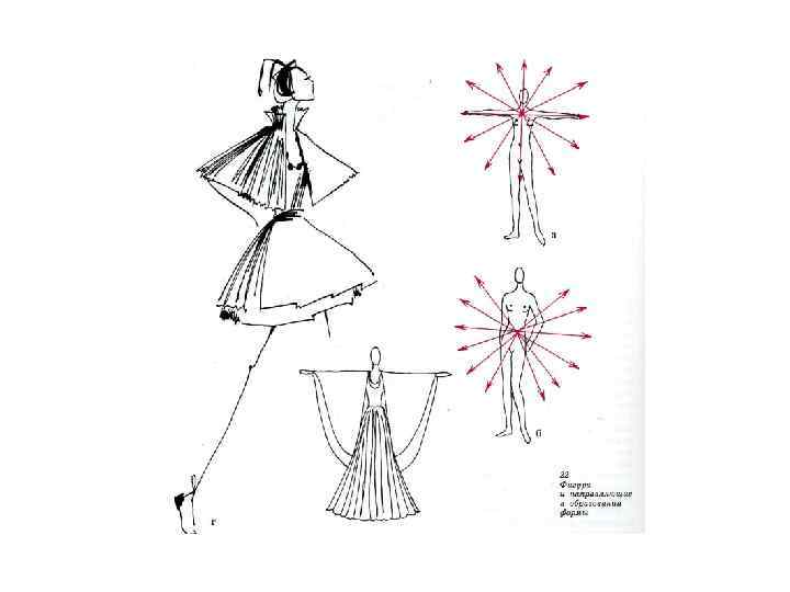 -В силуэте -В пластическом решении -В конструктивном решении -В расположении деталей -В организации фактуры и декора -В организации тоновых и цветовых пятен