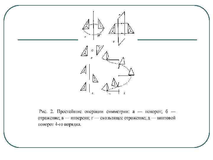 Напр. , при повороте вокруг оси х1 на угол- а =360°/N матрица D имеет вид: а при отражении в плоскости х1 х2 D имеет вид: