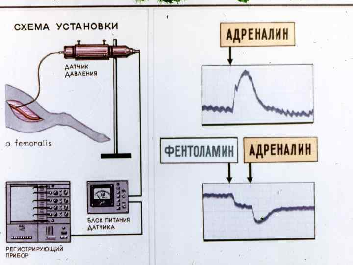 ВЛИЯНИЕ АДРЕНАЛИНА (Адр), РЕЗЕРПИНА (А), ФЕНТОЛАМИНА (Б) И АНАПРИЛИНА (В) НА АРТЕРИАЛЬНОЕ ДАВЛЕНИЕ Артериальное Адр давление А Адр Б Адр В Адр А Б В