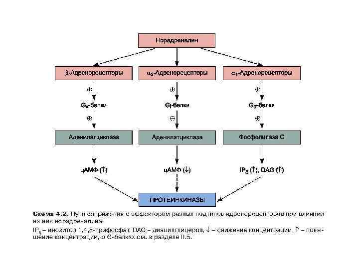 ЛОКАЛИЗАЦИЯ -АДРЕНОРЕЦЕПТОРОВ И ЭФФЕКТЫ, СВЯЗАННЫЕ С ИХ АКТИВАЦИЕЙ 1 Тонус гладких мышц кровеносных сосудов бронхов (пресинаптическое действие) ЖКТ (моторика) сфинктеров ЖКТ мочевого пузыря детрузор сфинктер семявыносящего протока радужки (радиальная мышца) Гепатоциты (липолиз, термогенез) В-клетки островков Лангерганса (секреция инсулина) Окончания эфферентных нервов (выделение медиатора) холинергические Слюнные железы (выделение К+) Тромбоциты (агрегация) Нейроны ствола головного мозга адренергические