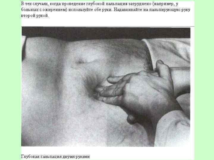 Край печени, пальпируемый двумя руками