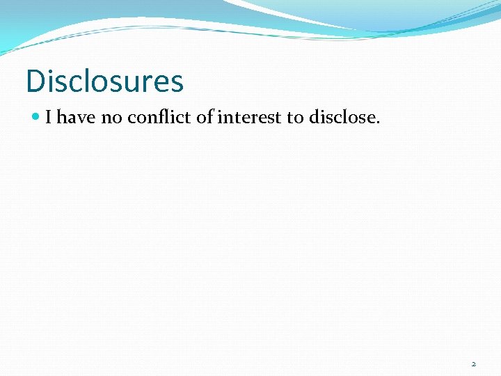 Disclosures I have no conflict of interest to disclose. 2