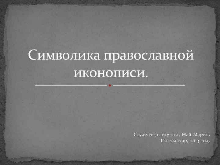 Символика православной иконописи. Студент 511 группы, Май Мария. Сыктывкар, 2013 год.