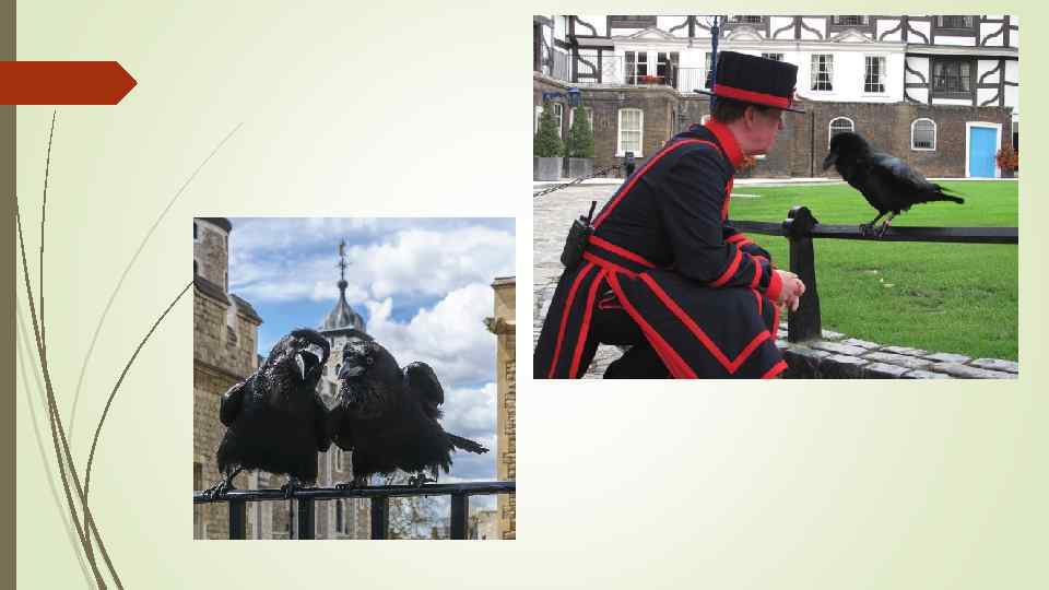 Чёрные (Тауэрские) вороны Популяция чёрных воронов, традиционно обитающая в лондонской королевской крепости Тауэр и имеющая символическое значение для Британии. Их небольшая популяция находится на государственном обеспечении и за ними ухаживает специально уполномоченный член церемониальной йоменской стражи Тауэра — Смотритель воронов (англ. Ravenmaster).