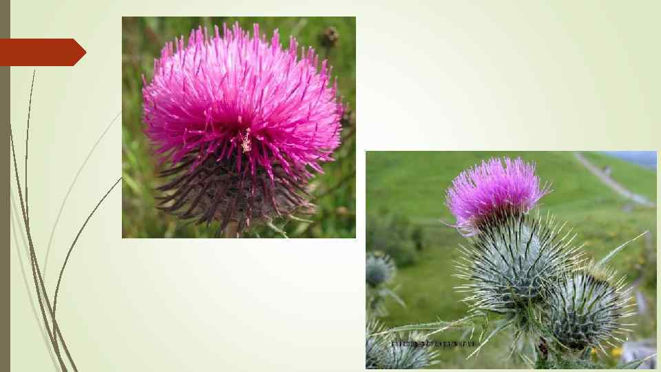 Цветок чертополоха – национальный символ Шотландии с 15 века, который согласно кельтским легендам преградил путь армии викингов, когда те хотели пройти через луг, усеянный остролистным бурьяном высотой с человеческий рост – так шотландская армия избежала кровопролитного боя с грозным завоевателем. С тех пор сиреневые бутоны чертополоха почитаются среди шотландцев как цветки-обереги.