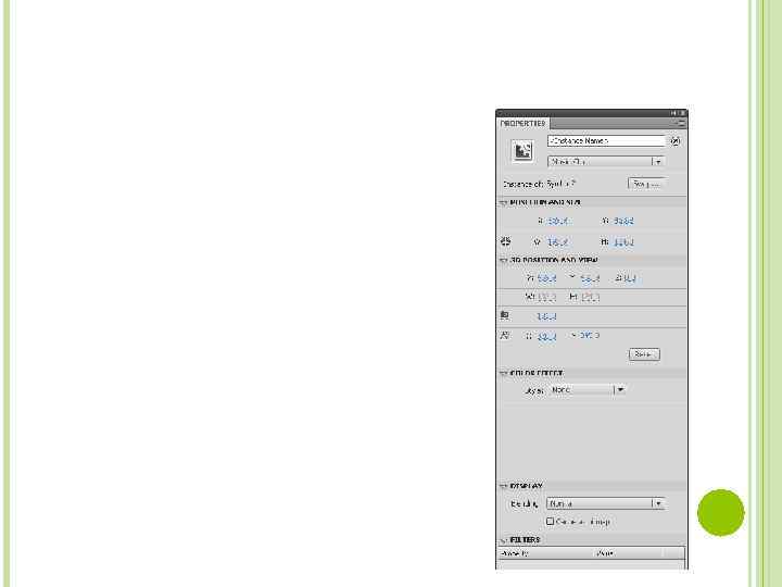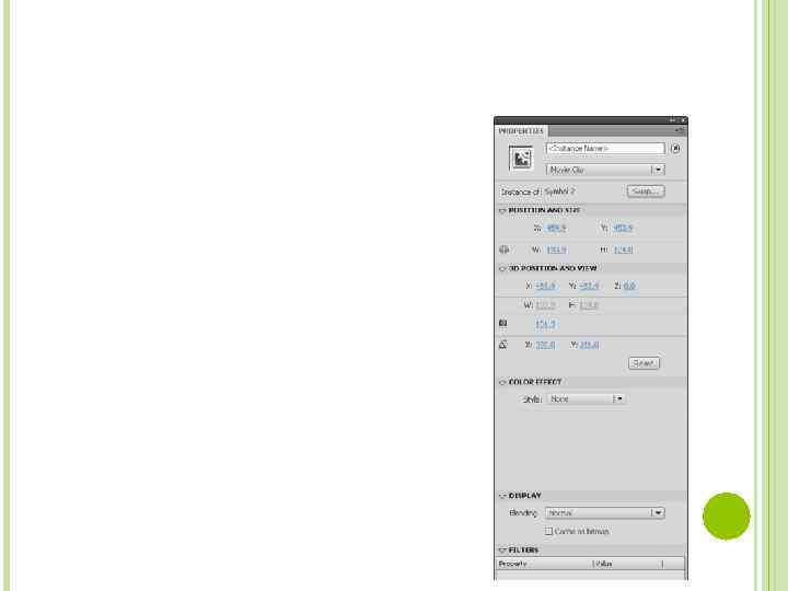 Поменять тип символа, не меняя при этом оригинал, можно, выбрав другой тип символа в списке Instance behavior, который находится непосредственно под полем с именем экземпляра клипа. Благодаря этому экземпляры одного и тот же символа библиотеки могут быть как кнопками или клипами, так и обычной графикой.