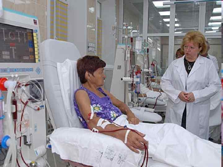 Гемодиализ осуществляют с помощью аппарата «искусственная почка» . Диализ - это процесс, при котором вещества, находящиеся в растворе, разделяются благодаря неодинаковым скоростям диффузии через мембрану, так как мембраны имеют различную проницаемость для веществ с различной молекулярной массой. С помощью гемодиализа удается устранить гиперкалиемию, азотемию и ацидоз.