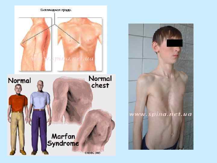 Характерно поражение трех систем органов: - скелет - глаза - сердечно-сосудистая система