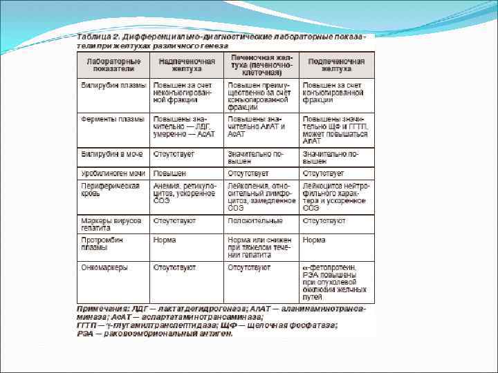 • Кроме того, проведение прямой и непрямой пробы Кумбса позволит предположить, имеет ли место несовместимость крови матери и ребенка по редким факторам. • Биохимический анализ крови (определение общего билирубина и его фракций, уровня трансаминаз печени, щелочной фосфатазы, концентрации общего белка, альбумина, глюкозы, мочевины и креатинина, холестерина и триглицеридов, С-реактивного белка, тимоловой пробы и т. д. ) позволяет не только диагностировать вид желтухи, но и собрать данные о состоянии других органов и систем, имеющие большое значение при назначении радикальных способов лечения (например, об изначальной функции почек очень важно иметь представление до проведения заменного переливания крови, так как одним из осложнений этой операции является острая почечная недостаточность). • Метод Эберлейна (определение фракций прямого билирубина — моно- и диглюкуронидбилирубина) имеет значение при дифференциальной диагностике механических и паренхиматозных желтух. • Необходимо также проведение тестов на выявление инфекционного агента в крови, стадии заболевания (ПЦР, иммуноферментный анализ, определение количества и вида иммуноглобулинов, определение авидности и аффинности антител, реакция Вассермана и др. ). • Определение профиля гормонов щитовидной железы проводится при подозрении на гипотиреоз.