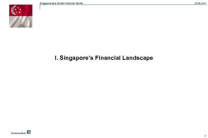 Singapore as a Global Financial Centre 26. 05. 2001 I. Singapore’s Financial Landscape Deutsche Bank 2