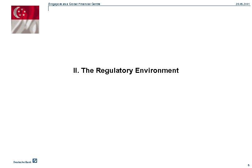 Singapore as a Global Financial Centre 26. 05. 2001 II. The Regulatory Environment Deutsche Bank 5