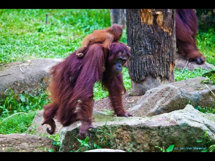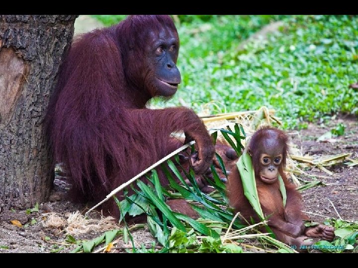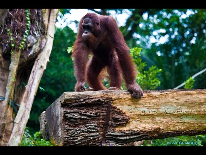 The almost extinct Orangutan from neighboring Borneo, second in intelligence only to man, lives here in comfort , in their natural environment.