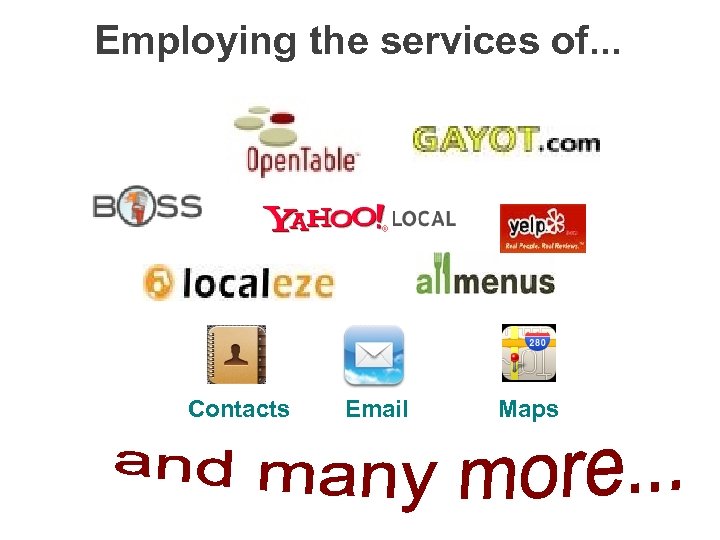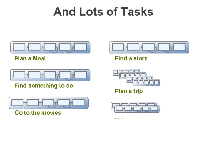 And Lots of Tasks Plan a Meal Find something to do Go to the movies Find a store Plan a trip . . .