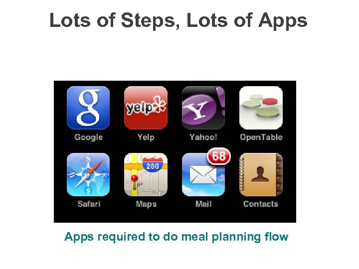 Lots of Steps, Lots of Apps required to do meal planning flow (c) 2009 Siri, Inc.