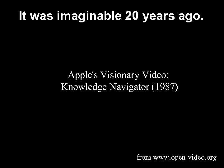 It was imaginable 20 years ago. Apple's Visionary Video: Knowledge Navigator (1987) from www. open-video. org