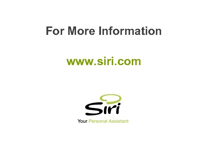 For More Information www. siri. com (c) 2009 Siri, Inc.