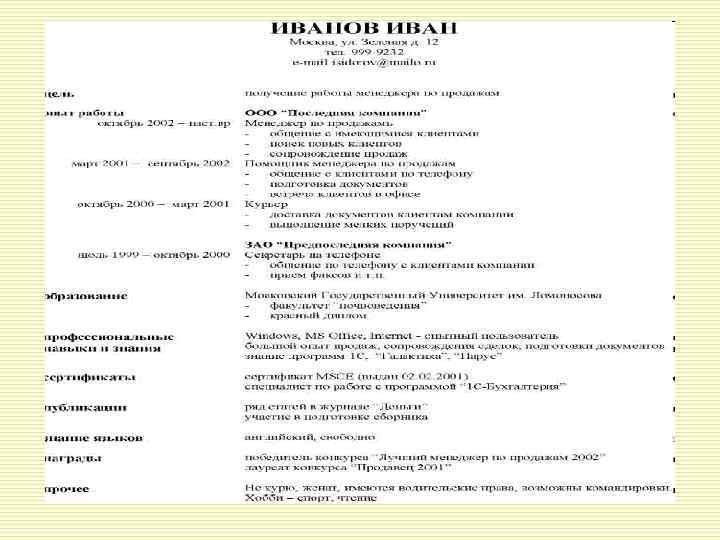 Резюме – это документ, описывающий жизненный путь составителя текста.