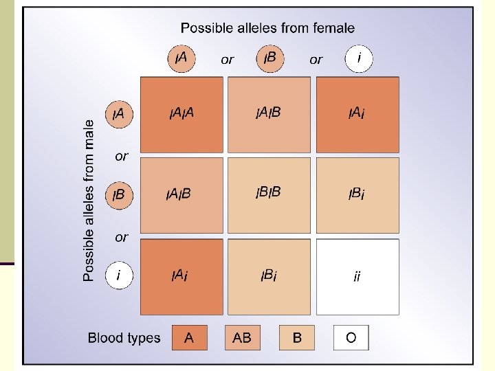 Наследование. История вопроса Felix Bernstein 1925 г. F. Bernstein предложил новую схему Суть – существуют три аллельных гена, два кодоминантных аллеля А и В, а один рецессивный – О при сочетании они дают шесть генотипов: АА, АО, ВВ, ВО, АВ и ОО, ОО проявляющихся в четырех фенотипах: А, В, АВ и О. О