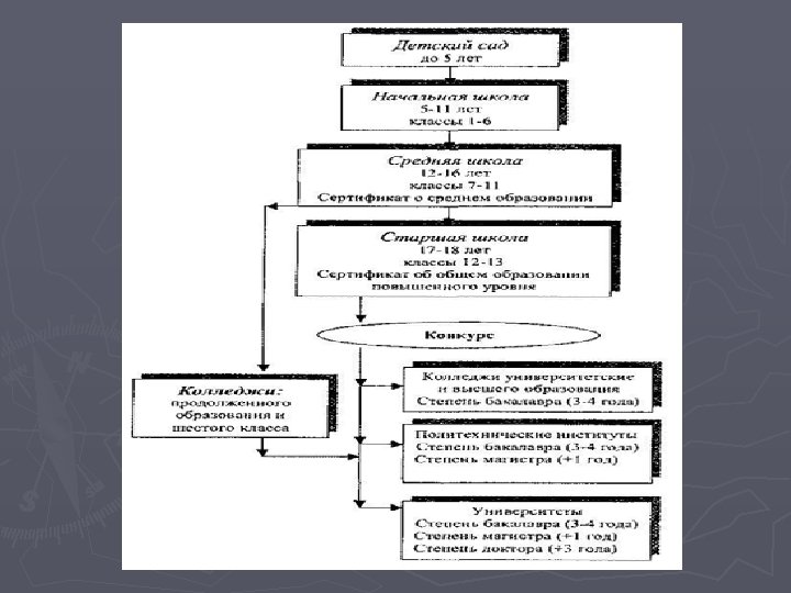 Ступени образования ► Дошкольное образование (pre-school) ► Начальное образование (primary-school) ► Среднее образование (secondary-school) ► Высшее образование (further-education)