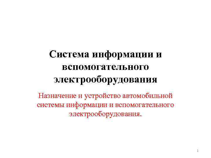 Система информации и вспомогательного электрооборудования Назначение и устройство автомобильной системы информации и вспомогательного электрооборудования. 1