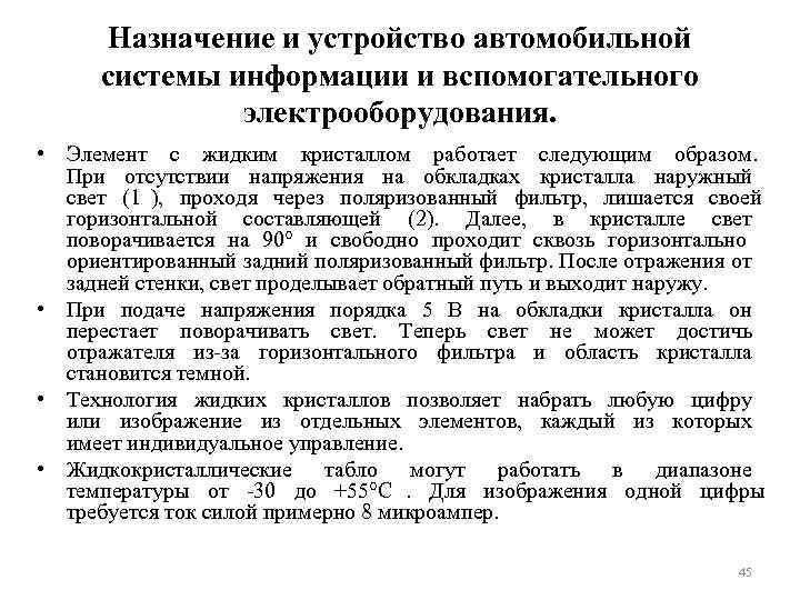 Назначение и устройство автомобильной системы информации и вспомогательного электрооборудования. Рис. 2. 23. Принцип работы дисплея на жидких кристаллах 44