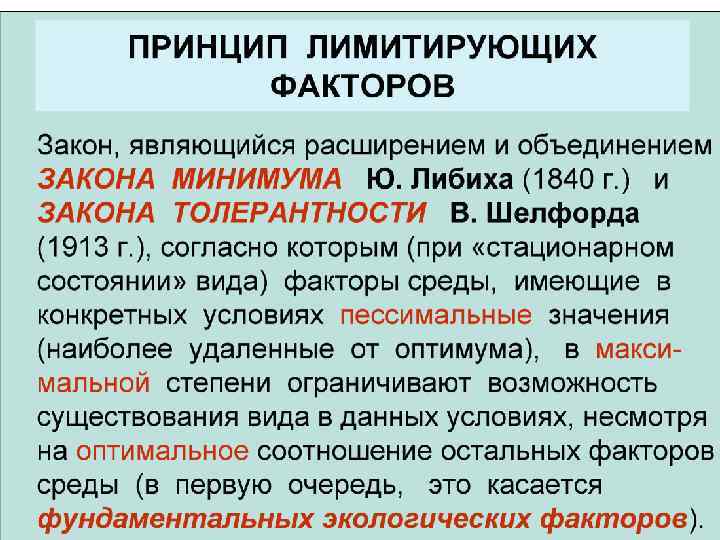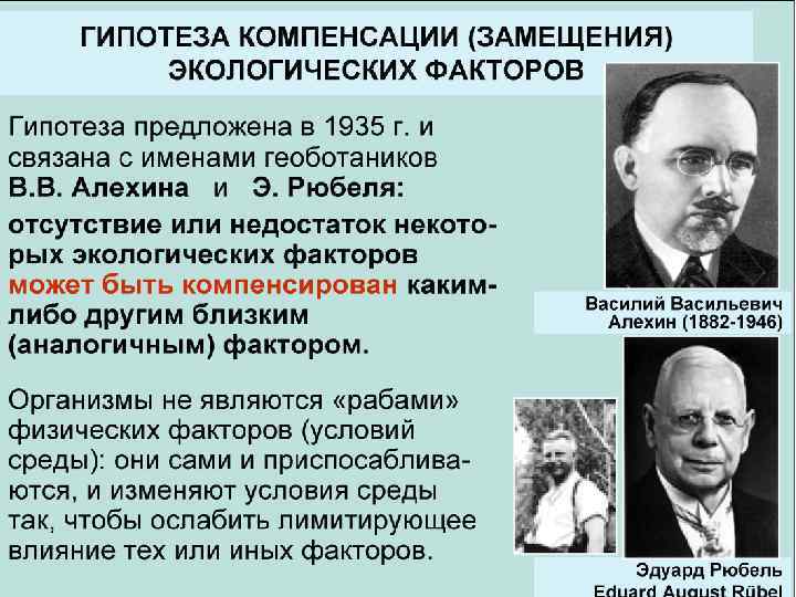 Л. Г. Раменский отмечал: «. . . теоретической задачей экологии является изыскание общезначимых количественных закономерностей в связях организмов и их группировок (ценозов) со средою (экологические оптимумы, факторы разной биологической значимости, средообразующая способность различных групп организмов и т. д. )» .