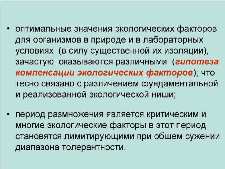 Ø Некоторые моллюски (Mytilus galloprovincialis) при отсутствии (или значительном дефиците) кальция могут построить свои раковины при достаточном количестве в среде стронция Ø Недостаток света в парнике может быть компенсирован или увеличением концентрации СО 2, или стимулирующим действием некоторых биологически активных веществ (например, гиббереллинов). Øтакая компенсация факторов, как правиле, относительна, так как фундаментальные экологические в принципе незаменимы