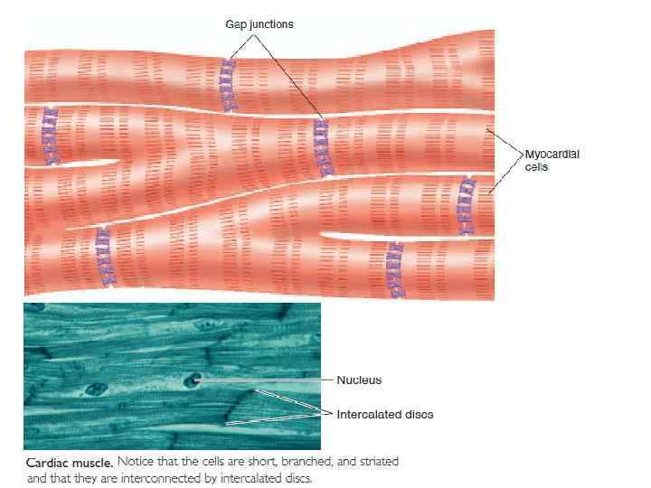 • Миокард состоит из поперечно-полосатых мышечных клеток — миоцитов. Длина их колеблется от 50 до 120 мкм, ширина равна 15— 20 мкм. • В центральной части миоцита расположены 1— 2 ядра. Сократительный элементы — миофибриллы занимают периферическую часть саркоплазмы. Способность С. к непрерывной работе связана с содержащимися в миоцитах митохондриями - носителями ферментов, участвующих в окислительновосстановительных процессах, обеспечивающих клетки энергией. • Между смежными миоцитами находятся вставочные диски, с помощью которых миоциты объединяются в мышечные волокна. Через вставочные диски проводится возбуждение с одной клетки на другую.