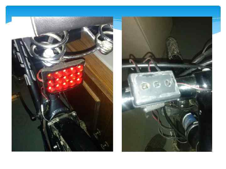 Цели и задачи Цели: Изделие должно ярко светить Единый источник питания Управление через единый пульт Задачи: Данное изделие должно быть похоже на автомобильную систему освещения, и должно подключаться к единому источнику питания аккумулятору. Сделать пульт управления для включения и выключения одной или другой части освещения велосипеда.